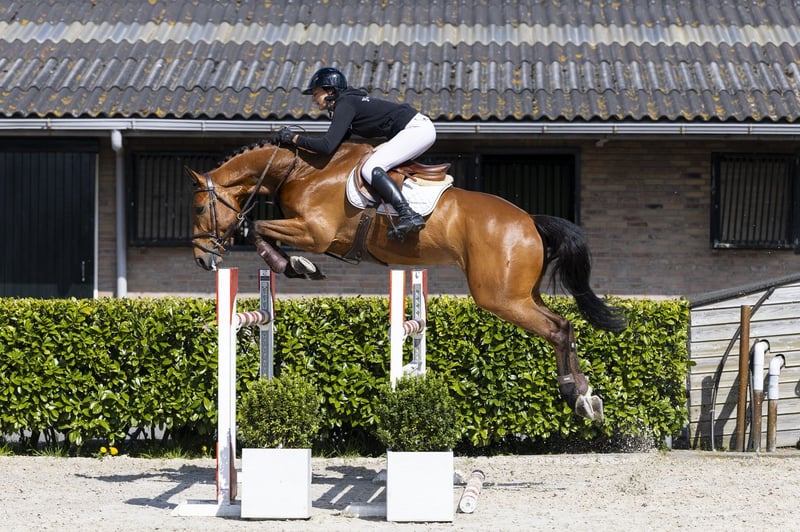 Very beautiful horse with 1.30m experience. Horse with blood in a good way, well-behaved in handling and friendly in character. Eager and careful on the jump, with a nice way of jumping. An appealing horse with quality and a good attitude. Sire Zinedream competed at 1.60m level and is among the modern top stallions. Through Zinedine (1.60m) x Guidam (1.60m), he brings scope, technique and attitude. He performed at the highest level and produces offspring competing at higher levels. Dam The dam Primera is by Perigueux, which contributes to scope and sport ability. Damline The damline is strongly built. From the direct line comes Christallo 2 (1.35m). Further in the line we see several horses at level, including Lazzarone 4 (1.50m) and La Luna Cucinelli (1.50m). Also Conn Rubina (1.35m) and multiple other horses at 1.30m–1.40m level come from this line. Deeper in the pedigree we also see performances at 1.60m level, confirming the quality and consistency of this line.