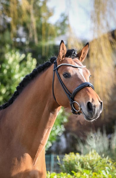 🌟 Ausdrucksstarker Dressurnachwuchs mit Perspektive bis M/S – 7-jähriger Wallach 🌟 Zum Verkauf steht ein 7-jähriger Wallach (ehemals gekörter Hengst) mit interessanter Abstammung und klarer sportlicher Perspektive. Mit ca. 170 cm Stockmaß überzeugt dieser moderne Sportler als kraftvoller, ausdrucksstarker Typ mit viel Präsenz und hervorragender Ausstrahlung im Viereck. Ein Pferd, das sofort ins Auge fällt und Eindruck hinterlässt. Ausbildungsstand: • Dressurpferde L siegreich • aktuell auf dem Weg Richtung Klasse M • Schulterherein und Traversalen im Trab sicher abrufbar • Traversalen im Galopp angelegt • erste Arbeit an fliegenden Wechseln Hervorzuheben ist, dass er bei den wenigen Turnierstarts, die er bisher hatte, immer klar im Kopf und ein absoluter Hingucker war. Er präsentierte sich sehr souverän, selbstbewusst und absolut unbeeindruckt von äußeren Einflüssen – ein echtes Verlasspferd im Viereck. Durch seinen Typ und seine Ausstrahlung ist er dabei stets ein Hingucker und Publikumsliebling. Im täglichen Training zeigt er sich als kraftvoller, klar im Kopf stehender Sportler, der mit der richtigen Unterstützung zuverlässig arbeitet und seine Aufgaben gut umsetzt. Wichtig: Kein Anfängerpferd. Gesucht wird ein erfahrener, ambitionierter Reiter, der Freude daran hat, ein kraftvolles Pferd weiter auszubilden und auf seinem Weg Richtung höhere Klassen (M/S) zu begleiten. Abstammung & Perspektive: Aus leistungsgeprägter Zucht stammend, vereint er Sportlichkeit, Präsenz und Entwicklungspotenzial – beste Voraussetzungen für eine erfolgreiche Zukunft im Dressurviereck. Für wen geeignet? • ambitionierte Turnierreiter • Reiter mit Erfahrung in der weiterführenden Ausbildung • fördernde Hände mit sportlichem Anspruch Röntgen TÜV aus Dezember 2021 mit über 30 Aufnahmen ist vorhanden. Ein hochwertiger Sattel kann gegen Aufpreis zusätzlich erworben werden. Aufgrund einer beruflichen Neuorientierung unserer Tochter verkaufen wir unseren Hampton schweren Herzens. Zum Schutz unseres Pferdes berechnen wir für das Probereiten eine Gebühr von 30 Euro. 📍 Weitere Informationen, Videos und Kennenlernen gerne auf Anfrage.