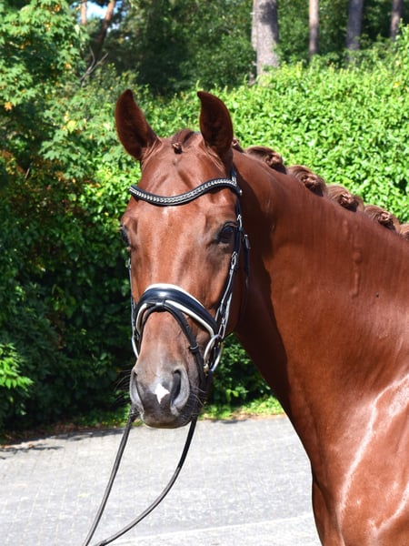 We are selling our homebred gelding with excellent bloodlines by Vitalis. Due to the rider's illness, he started his training later than usual. He learns new movements very quickly and always strives to do everything correctly. He has a very balanced temperament with a pleasant go. In handling, he is also very straightforward. Farrier visits, loading, or trimming – everything is routine for him. He has also mastered his first jumps under saddle with flying colors. A horse to fall in love with and have fun riding.