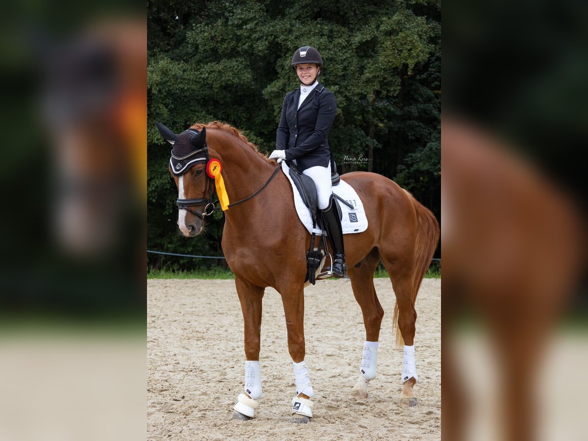 **Sales Advertisement: Beautiful Hanoverian Gelding** For sale is an impressive Hanoverian gelding, born in 2019. With his striking chestnut color and a height of 173 cm, he is not only a real eye-catcher but also a talented sport partner. This young gelding shows great potential in dressage and has already achieved first victories in A and L levels. His rideability and positive traits make him an ideal horse for ambitious riders looking for a reliable and eager-to-learn partner. He is well-mannered, well-trained, and remains calm even in the field. The gelding is regularly vaccinated and dewormed. If you are looking for a promising dressage horse that can shine both in training and at competitions, then this Hanoverian is just right for you! If you have any questions or are interested, please feel free to contact me. Come visit us and get to know this wonderful gelding in person!