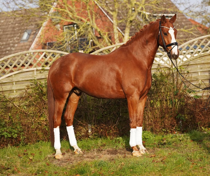 Characterful Chestnut Gelding with Excellent Temperament This large-framed son of Asgards Ibiza is available for sale. An expressive gelding with a lot of heart and a genuinely honest nature. He is a pleasure to ride, easy to handle, and reliably completes his daily work. He has three very good basic gaits and is on the way to competing in dressage horse L. Lateral movements have already been introduced. He consistently demonstrates a careful and straightforward demeanor with us. Suitable even for less experienced riders. Absolutely well-behaved in handling, balanced, and friendly within the herd. No emails – please only phone calls. Information provided without guarantee. Sale price plus VAT.