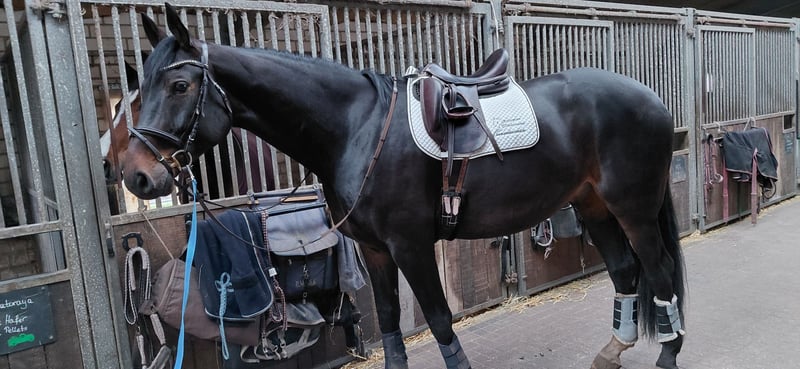 i.A. suche ich für diesen Wallach ein neues Zuhause, Quh ist ein bildschöner großer Wallach der sich für den anspruchsvollen Freizeitreiter anbietet, er hat eine sehr gute, solide Grundausbildung und ist sehr schön zu reiten, er war schonmal im Gelände und hat auch schonmal einen kleinen Sprung gemacht, genau das Richtige um die Freizeit im Sattel zu genießen und beim Reiten (nach einem anstrengenden Tag) abzuschalten, zu entspannen und auf andere Gedanken zu kommen, Quh ist ein sehr verschmustes, sehr gut erzogenes Pferd das dem Menschen sehr zugewandt ist, aufgrund eines Befundes der den Einsatz als Freizeitpferd absolut nicht beeinträchtigt wird er deutlich unter Wert verkauft, genauere Infos gibt es sehr gerne telefonisch, der Preis liegt im unteren Bereich der Kategorie, wichtig ist das Quh in gute Hände kommt, gerne versende ich nach einem telefonischen Erstkontakt weitere Fotos/Videos, reine Anfragen per WA/Mail o.äh. nach weiteren Videos und Fotos werde ich nicht beantworten, bitte haben Sie Verständnis dafür, das bei einem Pferd in der Preisklasse keine 20 Fotos und Videos versendet werden, kommen Sie sehr gerne vorbei und lernen Quh kennen ;-)