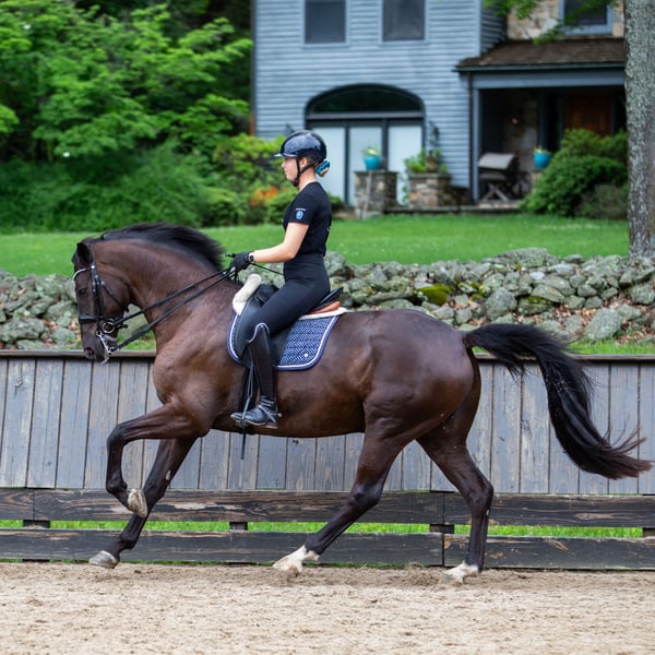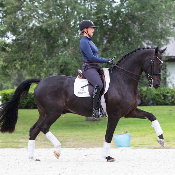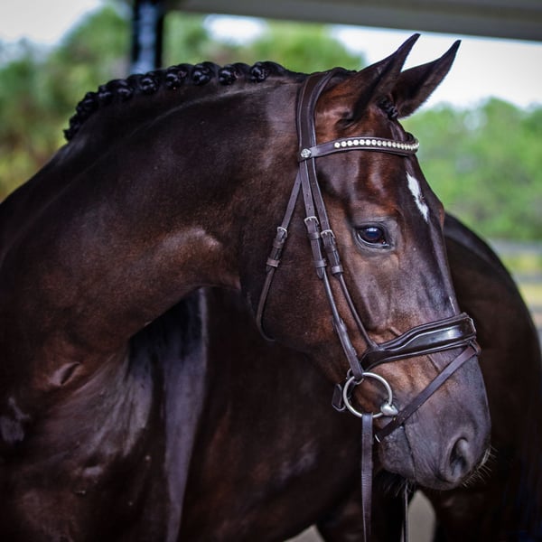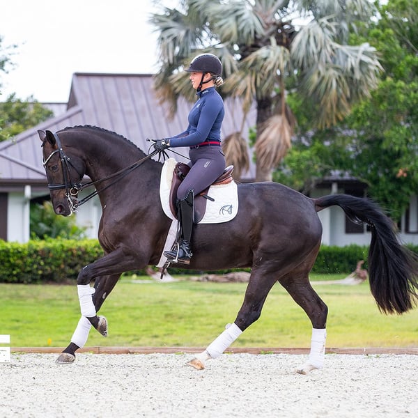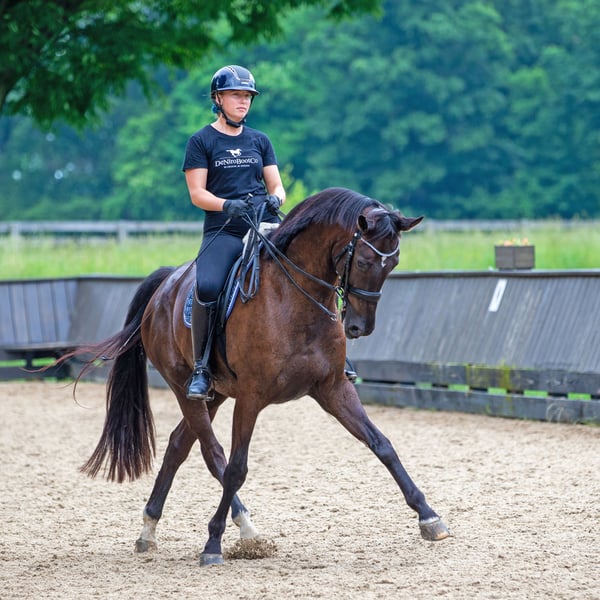 Balanced and athletic, this talented youngster brings peppy impulsion and a can-do attitude to the arena every single day. Three great gaits combined with high trainability, show experience, and a good start in tempi changes top off this idea package. He is looking for a partner who loves to train, ride and show!