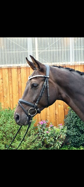 Elegant Hanoverian gelding for sale – perfect for dressage! Up for sale is a beautiful dark bay Hanoverian gelding, born in 2018. Standing at 16.1 hh, he impresses not only with his ideal size but also with his elegant appearance. He is highly suitable for dressage and demonstrates significant talent and a strong willingness to learn. He also excels in handling, with his attentive and consistently friendly nature, winning over everyone he meets. The gelding is healthy and comes with a current TÜV valid until May 2025. He has successfully completed dressage competitions up to class M, has already achieved initial successes in class S*, and is an excellent choice for both advanced riders and ambitious young riders. If you are interested or would like more information, please feel free to contact me. Arrange a test ride and see for yourself what a fantastic horse he is!