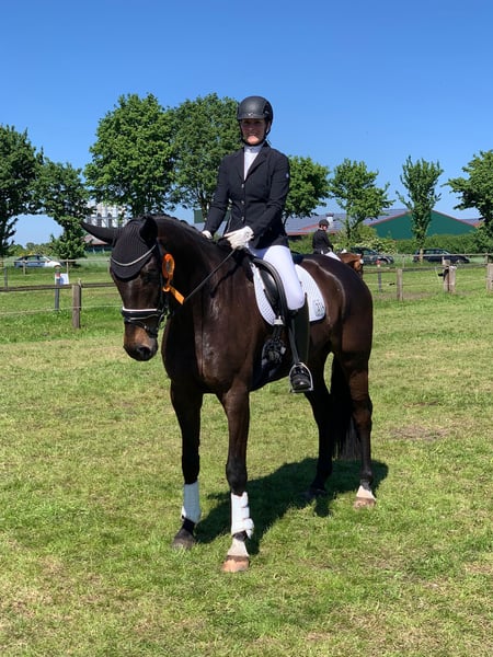 Simba is an 8-year-old gelding (San Amour x Compliment) who confidently masters the movements of the advanced level and impresses with his exceptional focus and willingness to learn. He is very attached to his rider and requires a stable, trusting person or family he can rely on, as his sensitivity should not be misunderstood due to lack of experience. Current X-ray images of his head to his hooves are available. If interested, please contact us by phone or WhatsApp at 0151-54632222.