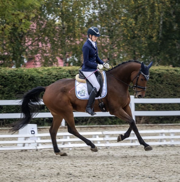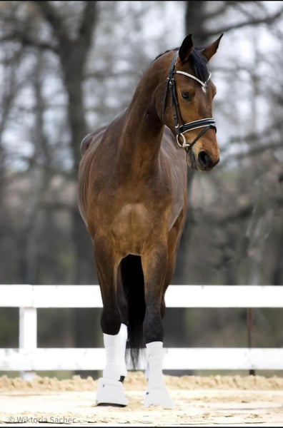 7 letni wałach ujeżdżeniowy na sprzedaż. Koń o ładnej proporcjonalnej budowie, z bardzo dobrym obszernym ruchem we wszystkich trzech chodach. Regularnie szczepiony i odrobaczany, zdrowy, nie choruje, nie kolkuje, nie kontuzjowany. Grzeczny przy wszystkich zabiegach pielęgnacyjnych i kowalu. Bardzo lubi kontakt z człowiekiem. Dobrze znosi wyjazdy na zawody. Na ten moment jest w regularnym treningu ujeżdżeniowym. Ma za sobą pierwsze starty w C klasie. Posiadam czysty TUV z 2022 Cena: 40000euro