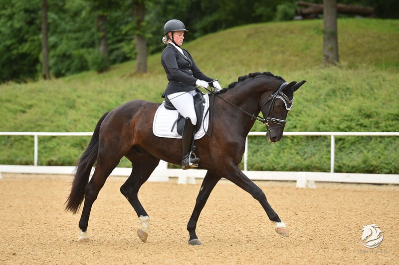 Quickstep es un caballo gelding Hannoverano de 8 años, aproximadamente 1,75 m de altura, y está en mi posesión desde hace 4 años. Ha sido entrenado hasta nivel M** y ha sido presentado en concursos. Es naturalmente calmado en el remolque, tranquilo en el herradero, y monta solo o en grupo en el campo. Disfruta de trabajar en los obstáculos y en los cavaletti. No muestra ningún comportamiento problemático ni en el suelo ni bajo la silla. Debido a hallazgos médicos y al estrés aumentado en concursos de mayor nivel, no deseo seguir presentándolo en competiciones de alto rendimiento. Busco para él un buen lugar donde alguien pueda divertirse con él y aprender de él como maestro. Q siempre está muy motivado, dispuesto a trabajar y disfruta de cualquier tipo de actividad. Está completamente en entrenamiento y no requiere un manejo especial. Se puede adquirir una silla adecuada y otros accesorios si se desea. Información sobre los hallazgos médicos y otros detalles solo por teléfono al +43 676 5398780. Ubicación cerca de Linz, Alta Austria – Por supuesto, es posible realizar una prueba de monta.