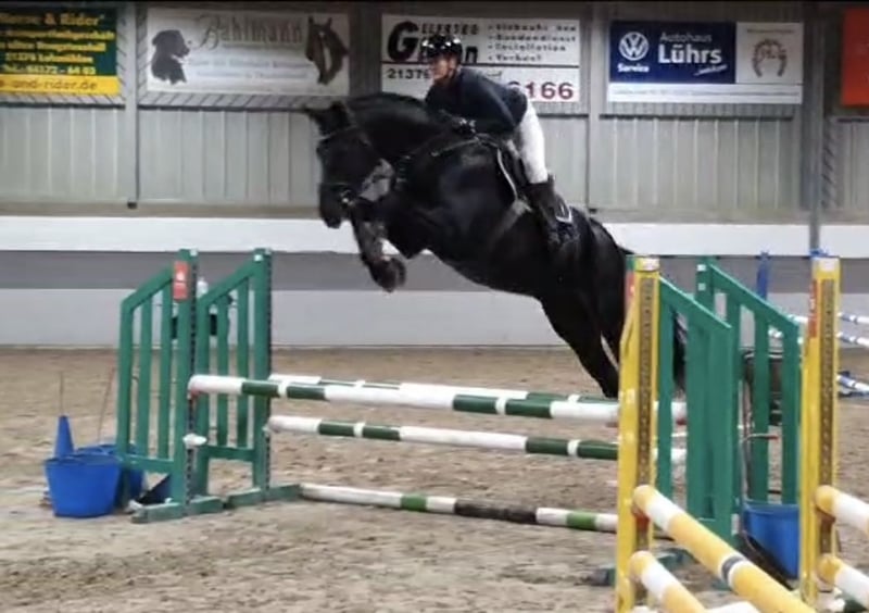 Wenn alles passt in allerbeste Hände abzugeben – ideal für ambitionierte Reiter! Mein großes Bärchen sucht aufgrund von Zeitmangel - wenn alles 100% passt- seine neue Familie. Er ist ein absolut ehrliches, dennoch sehr sensibles Pferd mit einem Herz aus Gold! Er bringt sehr viel Bewegungsqualität mit und sein Springvermögen lässt nicht zu wünschen übrig. Seine vielseitigen Fähigkeiten im Springen machen ihn zu einem zuverlässigen Partner für den Turnierreitsport oder den anspruchsvollen Freizeitreiter. Er ist ein sehr leichtrittiges Pferd, welches sehr großrahmige Bewegungen hat. Ich würde mir einen feinfühligen, gefühlvollen Reiter für ihn wünschen. Aufgrund seiner Größe habe ich ihn erst 5 jährig richtig geritten. Er hat mich während meiner Ausbildung zur Bereiterin begleitet und gemeinsam durften wir viel lernen. Sei es in der Dressur auf Kandare, im Springparcours oder in der Vielseitigkeit. In diesem Jahr haben wir zudem das Jagdreiten für uns entdeckt. Wenn Dino Vertrauen gefasst hat macht er wirklich alles möglich! Er ist ein sehr zuverlässiger Partner im Gelände - egal ob alleine, in der Gruppe, mit Hund oder mit Handpferd. Zudem ist er Verkehrssicher und im Umgang einfach ein Schatz. Unarten wie bocken oder steigen kennt er nicht. Aufgrund seiner großrahmigen Bewegung und der sensiblen Art nicht für Anfänger geeignet Bei Interesse oder für weitere Informationen stehe ich gerne zur Verfügung