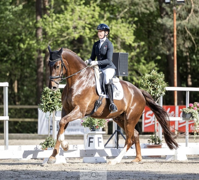 Elegante Hannoveraanse ruin – ideaal voor ambitieuze dressuurruiters Te koop aangeboden wordt een charmante, grootgebouwde Hannoveraanse ruin met een indrukwekkende schofthoogte van ongeveer 185 cm. Ondanks zijn formaat beweegt hij zich altijd lichtvoetig, met veel schwung en in balans. In de dagelijkse training toont hij zich gemotiveerd, fijn aan de hulpen en zeer prettig te rijden. Hij is al geplaatst in dressuurproeven M. Seriewissels en pirouettes zijn begonnen, evenals eerste pogingen tot piaffe en passage. Ook sprongen en cavaletti-work worden met grote motivatie uitgevoerd. In de omgang overtuigt hij door een vriendelijke, gevoelige en mensgerichte aard, wat hem extra lieflijk maakt. Hij is zeer sociaal, goed te combineren met andere paarden – ook hengsten vormen geen probleem. De verkoop gebeurt uitsluitend om privé- en beroepsmatige redenen. Meer informatie: Schuwt de smid en is bereid om te laden. Een actuele gezondheidskeuring (AKU) kan worden uitgevoerd bij serieuze interesse. Bij interesse of voor meer informatie sta ik graag tot uw beschikking.