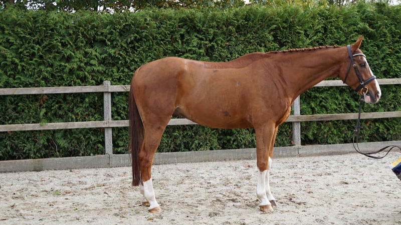 For sale: this stylish eight-year-old gelding – perfect for ambitious show jumpers! This charming chestnut gelding impresses with his friendly nature and his motivated attitude every day. Ginger is very well-schooled in dressage, and also practical and straightforward over fences. Although he has limited competition experience, he has shown great talent up to classes of 1.20 m (M*). An ideal partner would be a rider who can grow with him, as Ginger will be the perfect match even for more challenging tasks! A recent veterinary examination is available. If you're interested or would like more information and videos, please feel free to contact me at 0172 3241632.