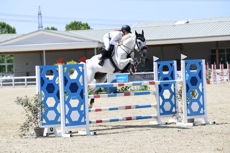 Hannoverian Gelding – Ideal for ambitious riders! This stunning grey, born in 2016, impresses with its noble appearance and excellent jumping abilities. Standing at 16.1 hh, he offers the perfect size for active riders who value quality and a willingness to perform. The Hannoverian gelding impresses with his jump-oriented temperament, eagerness to learn, and friendly nature. He is well-trained, reliable in the show jumping arena, and always shows joy in jumping. A versatile partner for the competitive rider or the ambitious leisure rider looking to develop their skills further. Please feel free to contact me for more information or if you are interested.