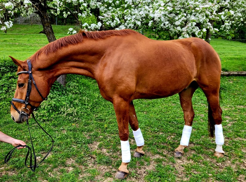 For sale is a 9-year-old gelding. This gelding stands out with his 3 good and comfortable gaits. Placed up to L-level dressage. An ideal junior horse, unused and healthy. He enjoys free jumping and jumping exercises and also loves going out on trails! Riding videos via WhatsApp 0174/9603859.