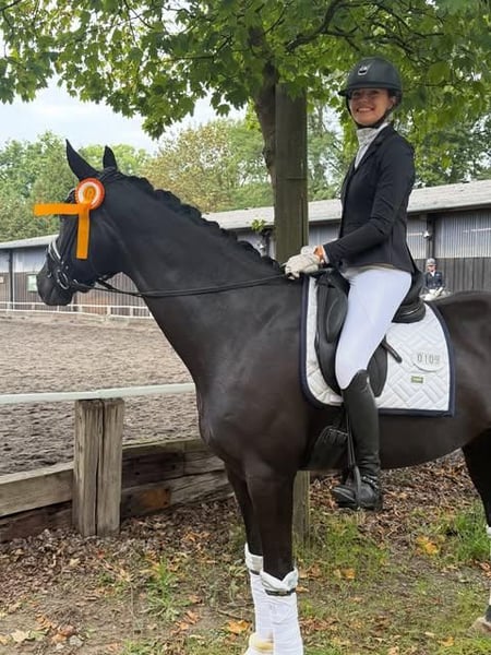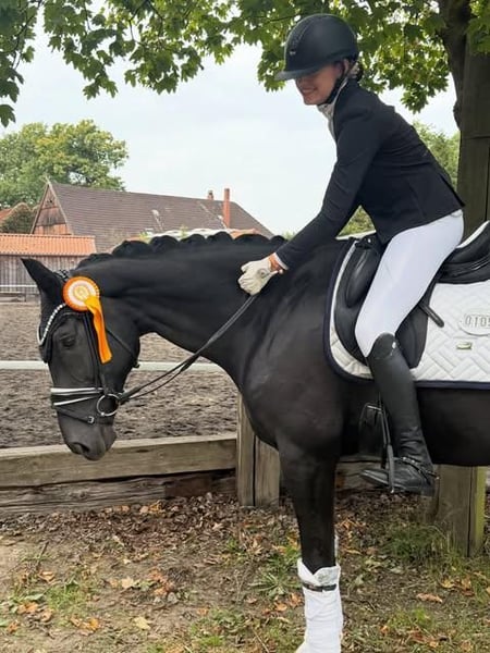 Ein wunderschöner schwarzer Hannoveraner Wallach, der sich hervorragend für den fortgeschrittenen Spring- und Dressursport eignet. Dieses elegante Pferd überzeugt durch seine beeindruckende Erscheinung, seine athletische Statur und seine ausdrucksstarken, elastischen Bewegungen. Ein beeindruckender, tiefschwarzer Hannoveraner Wallach mit außergewöhnlicher Ausstrahlung und Präsenz. Sein eleganter, harmonisch gebauter Körper wird durch einen edlen, ausdrucksstarken Kopf und große, wache Augen ergänzt. Mit einem kraftvollen Hinterbein, hervorragender Balance und natürlicher Versammlungsfähigkeit zeigt er großes Talent für die Anforderungen des gehobenen Dressursports. Seine Bewegungen sind schwungvoll, elastisch und von bemerkenswerter Leichtigkeit geprägt – besonders im Trab überzeugt er mit Raumgriff und Kadenz, während sein Galopp bergauf und kraftvoll ist. Gleichzeitig verfügt er über großes Vermögen und Vorsicht am Sprung, was ihn auch für den anspruchsvollen Springsport prädestiniert. Dieses elegante Pferd überzeugt durch seine beeindruckende Erscheinung, seine athletische Statur und seine ausdrucksstarken, elastischen Bewegungen. Mit viel Vermögen am Sprung, einer hervorragenden Technik und großer Vorsicht zeigt er großes Talent im Parcours. Gleichzeitig verfügt er über drei sehr gute Grundgangarten mit viel Schwung, Balance und Takt – ideale Voraussetzungen für die weiterführende Dressurausbildung. Der Wallach ist vollkommen gesund, leistungsbereit und zeigt sich stets motiviert bei der Arbeit. Besonders hervorzuheben sind seine sehr sauberen Röntgenbilder, die seine ausgezeichnete körperliche Verfassung unterstreichen. Dieser Wallach ist fein an den Hilfen, lernwillig und leistungsbereit. Er eignet sich ideal für erfahrene Reiter, die ein Pferd für den fortgeschrittenen Dressur- und Springsport suchen. Ein wahrer Blickfang mit Sportlerherz und besten Voraussetzungen für eine erfolgreiche Zukunft im Viereck und Parcours. Mit viel Vermögen am Sprung, einer hervorragenden Technik und großer Vorsicht zeigt er großes Talent im Parcours. Gleichzeitig verfügt er über drei sehr gute Grundgangarten mit viel Schwung, Balance und Takt – ideale Voraussetzungen für die weiterführende Dressurausbildung. Der Wallach ist vollkommen gesund, leistungsbereit und zeigt sich stets motiviert bei der Arbeit. Besonders hervorzuheben sind seine sehr sauberen Röntgenbilder, die seine ausgezeichnete körperliche Verfassung unterstreichen. Auch im Umgang überzeugt er mit einem angenehmen Charakter: aufmerksam, lernwillig und zuverlässig. Ein vielversprechender Partner für ambitionierte Reiter, die ein talentiertes Pferd für gehobenen Spring- und Dressursport suchen.