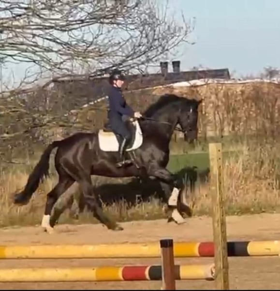 For sale: An elegant Hanoverian gelding, born in 2017. Felix impresses with his impressive height of 17.4 hh and his versatile dressage qualities. With his balanced temperament and excellent movement, he is the ideal partner for an ambitious rider who values quality and willingness to perform, as well as a horse with potential for much more — flying changes are no problem. A successful debut in M-level competitions should be achievable at the beginning of the season, and by the end of the season, he may even be ready for S* level. If interested, I am happy to provide further information and arrange a viewing.