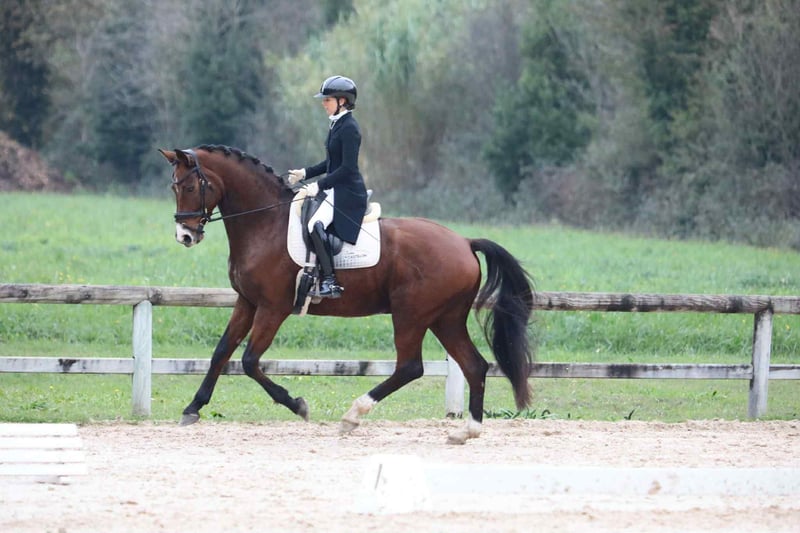 Hier präsentieren wir Ihnen Spring Time, einen großartigen achtjährigen Hannoveraner Hengst mit einer Größe von 1,75 m. Er verfügt über eine außergewöhnliche Bewegungsqualität, ein ausgeglichenes Wesen und eine solide Turniererfahrung. Ein Pferd, das einen ambitionierten Reiter auf dem Weg zu Prüfungen auf Niveau Saint-Georges und darüber hinaus begleitet und dabei Komfort, Sicherheit und Freude im Alltag bietet. Spring Time stammt aus seriösen und sportlichen Linien. Er ist ein Sohn von Soliman de Hus, bekannt für seine elegante und leicht zu reitende Nachzucht, sowie ein Enkel von Florestan, einem Grundpfeiler des deutschen Zuchtwesens, der für seine ausgezeichnete Mentalität und seine beeindruckenden Bewegungen geschätzt wird. Geboren wurde er im renommierten Zuchtbetrieb des Paluds, der für die Produktion leistungsstarker und ausgeglichener Dressurpferde bekannt ist. Sein moderner, kraftvoller und harmonischer Körperbau zeichnet sich durch einen kräftigen Rücken, eine große natürliche Bewegungsamplitude und ein sehr gesundes Gleichgewicht unter dem Reiter aus. Er verkörpert die ideale Verbindung aus Kraft, Flexibilität und Intelligenz. Mit bereits solider Turniererfahrung hat Spring Time seine Zuverlässigkeit, Großzügigkeit und seine Fähigkeit, sich in der Arena ruhig weiterzuentwickeln, unter Beweis gestellt. Derzeit arbeitet er auf dem Niveau Saint-Georges, mit gut verankerten technischen Grundlagen: Traversalen, enge Tempowechsel, Pirouetten im Aufbau, kraftvolle Verlangsamungen und erste diagonale Übungen. Sein ausgeglichenes Wesen ist ein echter Vorteil: respektvoll, ruhig im Kopf, willig und menschenbezogen. Er reist gut, geht auch alleine ins Gelände, integriert sich problemlos in neue Umgebungen und zeigt keinerlei Unarten. Seine flüssige und ausdrucksstarke Bewegungsführung bietet einen sehr guten, gleichmäßigen Schritt, einen elastischen Trab mit Sprungkraft und natürlicher Vorwärtsdrang sowie einen ausgeglichenen, aufgerittenen Galopp, der leicht zu kontrollieren ist. Ein ideales Partnerpferd für Amateure, Kinder, Jugendliche, junge Reiter oder Profis, die sich auf Prüfungen im Bereich Amateur Elite oder Pro 2 und höher vorbereiten möchten – mit einem bereits gut ausgebildeten und ausgeglichenen Pferd. Ebenso geeignet für Reiter, die ein modernes Lehrpferd suchen, ohne die Herausforderungen eines jungen Pferdes. Turniererfahrung: - Vize-Meister Frankreichs der 4-Jährigen CL - 5-jährige Klasse mit Durchschnittswerten um 78 % - Mit 6 Jahren in der Amateur 1: Departementalsieger und Sieger des Süd Dress Tour - Mit 7 Jahren Einstieg in die Pro 3, um sich auf Saint-Georges vorzubereiten - Mit 8 Jahren: Einstieg in Saint-Georges, Start im September 2025: 66,5 % und 67,8 % in der Amateur Elite Vorrunde und Grand Prix Mit seiner beeindruckenden Statur, seinen prestigeträchtigen Abstammung, seinem fortgeschrittenen Ausbildungsstand und seiner natürlichen Freundlichkeit ist Spring Time eine hervorragende Gelegenheit für alle, die einen zuverlässigen, wettbewerbsfähigen und gut ausgebildeten Partner suchen.
