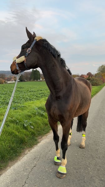 For sale is my Hanoverian gelding Haribo. Unfortunately, I have to part with him due to personal reasons. Date of Birth: April 25, 2017 Height approximately 185 cm, currently barefoot (farrier recommends shoes on the front), conditionally rideable (initially purchased as a companion horse, conditionally trainable; front right has chips at the fetlock joint and a swelling, headshaking, suspected neck vertebrae issues). A regular physiotherapy routine is recommended for him. Teeth were done in 2024. All accessories (blankets, bridle, etc.) are included. NO saddle. The horse can be viewed at any time. Please feel free to contact me for further questions.