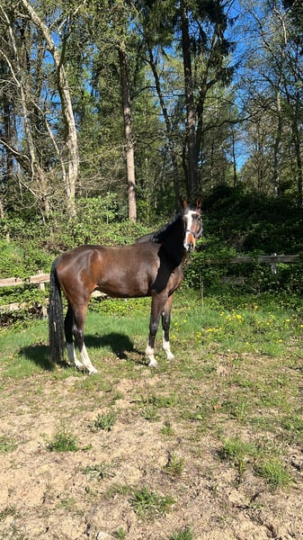 Na sprzedaż wystawiam mojego konia typu Hannoveraner, wałacha o imieniu Haribo. Niestety, z powodów osobistych muszę go sprzedać. Data urodzenia: 25.04.2017 Wzrost około 185 cm, obecnie bez butów (zalecenie kowala to założenie podków na przednie kopyta), w stanie do jazdy (kupiony jako koń do towarzystwa, w stanie częściowo przygotowany do jazdy; na przednim prawym kopycie chips i tarcza, headshaking, podejrzenie problemów z kręgami szyjnymi). Zalecana regularna fizjoterapia. Zęby były poddane kontroli w 2024 roku. Wszystkie akcesoria (czaprak, uzda itp.) zostaną dołączone. Brak siodła. Koń jest dostępny do obejrzenia w dowolnym momencie. W razie pytań chętnie służę dodatkowymi informacjami.