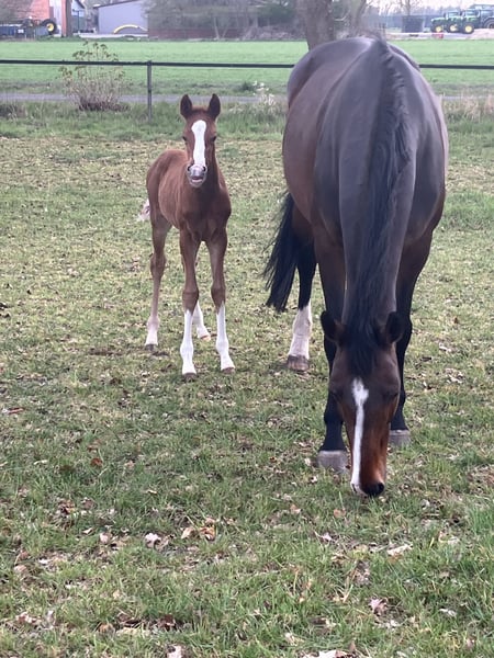 Dieser Jährling verfügt über sehr qualitätvolle GGA, steht auf sehr korrektem, stabilen Fundament und zeigt eine starke, geschlossene Oberlinie. Er entstammt dem berühmten Stutenstamm der Neastate, aus dem schon unzählige Sportpferde, gekörte Hengste und Prämienstuten hervorgegangen sind. Der Vollbruder der Mutter ist 6j. bereits M hochplatziert und inzwischen S gestartet, die Vollschwester war vor ihrem Zuchteinsatz in Springen bis L siegreich, M gestartet. Ein 3/4 Bruder von Valdiviani befindet sich in Hengstaufzucht, eine Halbschwester(Escamillo) ist in Jungpferdeprüfungen erfolgreich.