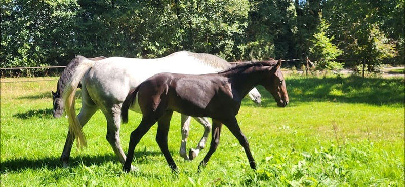 Przyzwoite i poprawne źrebię ogierka o doskonałym pochodzeniu i sportowych perspektywach. Ojciec: Diacontinus – Diarado x Contendro I x Argentinus, z wysoką dziedzicznością predyspozycji skokowych. Matka: Akira B 3 – córka Arezzo VDL, sama wielokrotnie zwycięska w skokach i wysoko plasująca się na poziomie S. Związek hodowlany Hannover. Źrebię zachwyca wyraźnym typem, prawidłową budową i mocnym ruchem. Linia matczyna z Chin Chin i Heartbreaker czyni je bardzo atrakcyjnym zarówno do hodowli, jak i sportu. Pokazuje się jako bardzo otwarty, chętny do nauki i przyjazny dla człowieka – prawdziwy talent młodego pokolenia, z charakterem i urokiem. Lokalizacja: Bad Bentheim ☎️ Kontakt: 0152 3111967 lub e-mail Cena: 7500 € do negocjacji