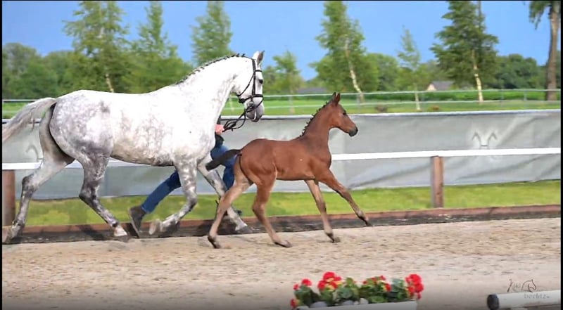 Prachtvol en correct veulenkalf met uitstekende afstamming en sportieve potentie. Vader: Diacontinus - Diarado x Contendro I x Argentinus, met een hoge erfelijkheid voor springtalent. Moeder: Akira B 3 - dochter van Arezzo VDL, zelf meerdere keren M-springwinnaar en hoog S-geplaatst. Zuchtvereniging Hannover. Het veulen overtuigt met een duidelijk type, een correct fundament en krachtige bewegingen. De sportgecertificeerde moederlijn met Chin Chin en Heartbreaker maakt hem zeer interessant voor fokkerij en sport. Hij toont zich zeer open, leergierig en mensgericht – een echt talent met karakter en charme. Locatie: Bad Bentheim ☎️ Contact: 015223111967 of per e-mail Prijs: €7.500 VHB