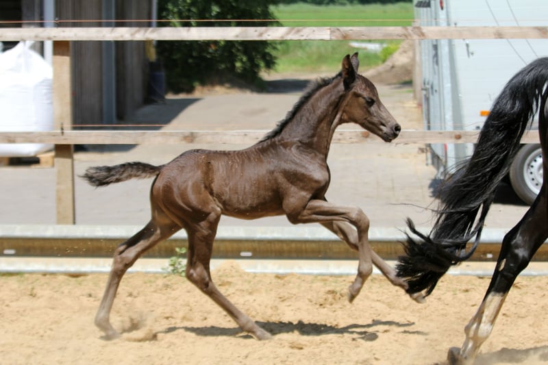 Lackschwarz und mit ganz viel Charme weiß dieser junge Mann zu begeistern. Mit schönem Auge, herrlichem Gesicht und toll bergauf getragenen Grundgangarten steht einer Karriere im Dressursport nichts im Wege. Dies ist auch genetisch vorprogrammiert: Vater Leclerc ist Sohn des zweitplatzierten des Nürnbergerburgpokals 2023 Lord Europe und damit Enkel des Glamourdale Vaters Lord Leatherdale. Leclercs Mutter, die St. Pr. und El. St. Weihronce ist auch Mutter von Viva Gold, der jungst unter Isabell Werth für Schlagzeilen sorgt. Großmutter ist keine geringere als die Ausnahmestute Weihegold die wohl in der Verbindung von sportlicher und züchterische Eigenleistung ein weltweites Alleinstellungsmerkmal genießt. Sie war 2008 Oldenburger Siegerstute, 2009 Bronzemedaillengewinnerin beim Bundeschampionat, 2010 Finalistin bei der Jungpferde WM, 2013 Siegerin des Nürnberger Burgpokals, 2014 Siegerin im Louisdor Preis Finale. Sie war Europameisterin, Weltmeisterin, Olympiasiegerin, dreifache Worldcupsiegerin und natürlich Weltranglistenerste. Sie wurde 2022 17jährig kerngesund und voller Gehfreude als dritte des Worldcupfinales in Leipzig sportlich verabschiedet. Mütterlicherseits folgt mit Floriscount ein weiterer bis zur schweren Klasse ausgebildeter Hengst und auch Urgroßvater Rotspon stellte zahlreiche international erfolgreiche Dressurpferde. Im Züchterauftrag. Video auf Anfrage. Aufzuchtsplatz kann gestellt werden.