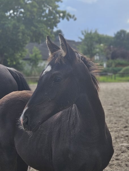 Im direkten Auftrag der Züchter: Bildschönes, sehr korrektes Hengstfohlen vom aktuell hocherfolgreichen Bundeschampionatsfinalist St. Emilion OLD. Das Fohlen bewegt sich mit viel Ablauf und Mechanik im Vorderbein, mit sehr gutem Schritt und Galopp. Ein komplettes Pferd mit Perspektive für das Viereck oder die Hengstaufzucht. Die Mutter ist die Staatsprämienstute Romina, die mit der Tochter der Züchter im Junge Reiter-Sport mehrfach bis M-Dressur erfolgreich war. Sie absolvierte zudem eine sehr gute SLP und erreichte in der Eintragung Noten bis 9,0 und ist im Programm der Hannoveraner Dressurpferdezucht mit zwei Sternen bewertet. Für weitere Auskünfte stehen wir gerne bereit.