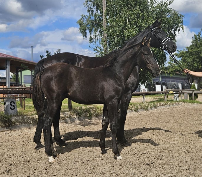 Su richiesta diretta degli allevatori: Bellissimo e molto corretto puledro maschio dal campione di campionato Bundeschampionatsfinalist St. Emilion OLD, attualmente molto di successo. Il puledro si muove con molta fluidità e meccanica nell'arto anteriore, con un passo e un galoppo molto buoni. Un cavallo completo con prospettive per il rettangolo o la selezione dei stalloni. La madre è la cavalla premiata di stato Romina, che ha avuto successo nel giovane sport dei cavalieri con la figlia degli allevatori fino a M-Dressur. Ha inoltre completato un ottimo SLP e ha ottenuto punteggi fino a 9,0 nella registrazione ed è valutata con due stelle nel programma di allevamento dei cavalli da dressage hannoveriani. Per ulteriori informazioni siamo a disposizione.
