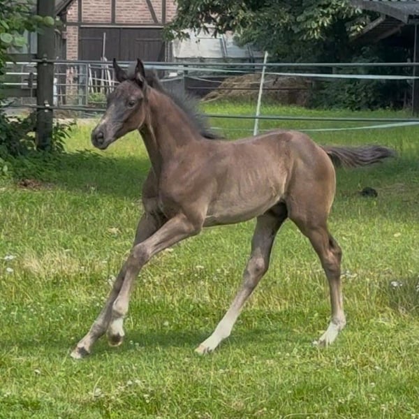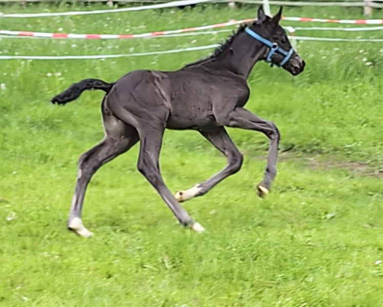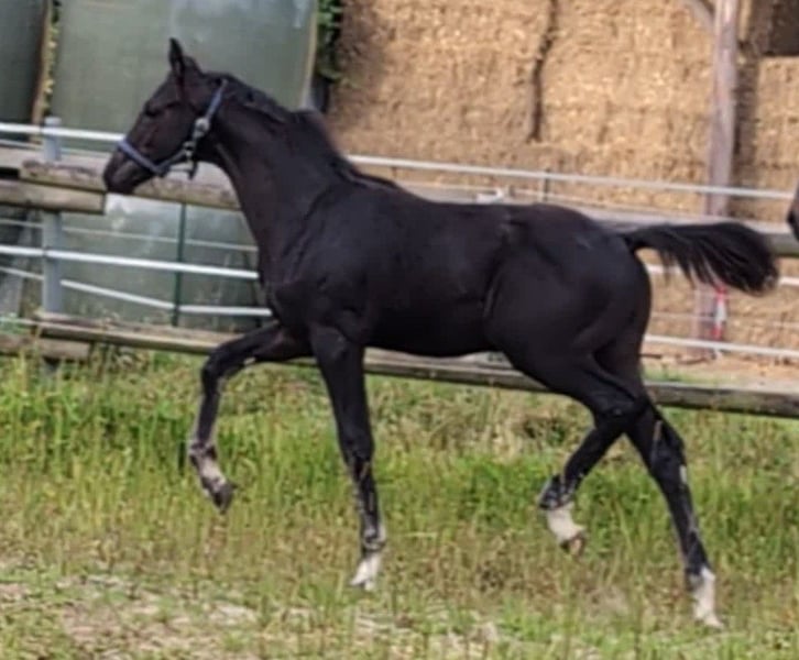Urodził się 10 maja i już potrafi się zaprezentować. Nie tylko bardzo ładny, ale także przyjazny dla ludzi i uwielbiający pieszczoty. Matka to klacz z nagrodą państwową, a ojciec ma również doskonałe pochodzenie w ujeżdżeniu. Sukcesywny rodowód matki aż do S- klasy w ujeżdżeniu.