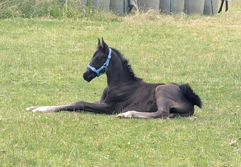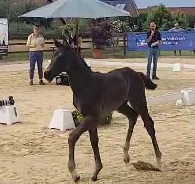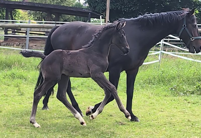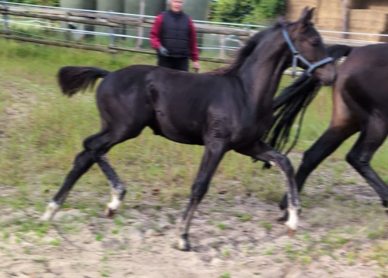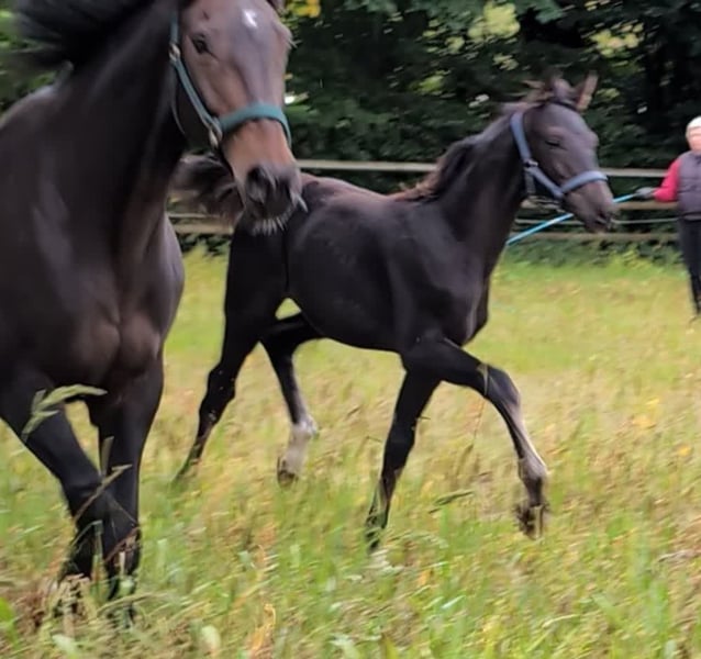 Am 10. Mai ist er geboren und weiß sich schon zu präsentieren. Nicht nur sehr hübsch, sondern auch Menschenfreundlich und verschmust .Der Hengst steht auf korrektem Fundament ohne Fehlstellungen. Die Mutter ist Staatsprämienstute , der Vater hat auch allerbeste Dressurabstammung und war Prämienhengst .Erfolgreicher Mutterstamm bis S- Dressur.
