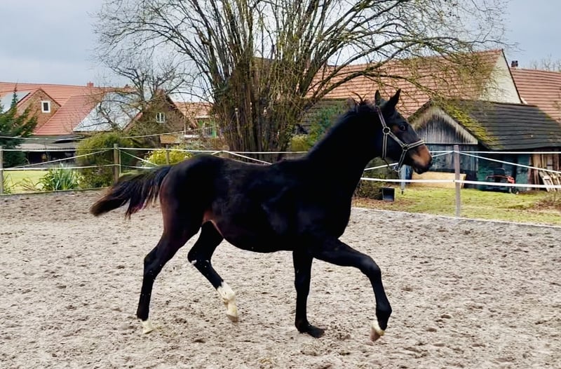 HENGSTANWÄRTER von TOTAL HOPE aus Scolari StPrSt, die selbst Eigenleistung in Rpfd. und Dpfd-A erfolgreich war und mit Springvermögen ausgestattet (bis Springpfd-L), sogar mutig und engagniert im "Busch" unterwegs, deren Vollschwester internat. 4*S-Grand Prix erfolgreich Das Fohlen begeisterte renommierte Zuchtexperten (Hannov. Verband) bei der Züchter-Fohlenrundfahrt in 2025 auf unseren Hof ! Vater Total Hope -DER Sohn des TOTILAS aus der WEIHEGOLD (Isabell Werth) was ein Grand-Prix-Pferd ! weitere Erfolgspferde im fallenden Stamm Kräftiger Körperbau, aber mit Chic und EDEL, korrekt 3 sehr gute GGA, schöne Bewegungen durch den Körper, aktives Hinterbein zutraulicher Charakter, robust direkt vom Züchter aus familiärer Zuchtstätte
