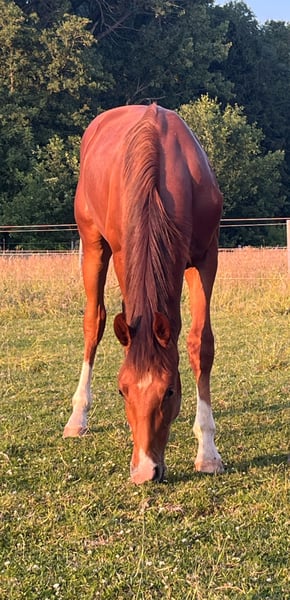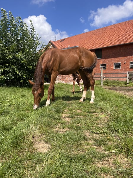 Wir verkaufen unseren vielversprechenden Jährlingshengst von Viva Vitalis aus einer Sir Donnerhall–Rotspon Mutter. Dieser Hengst überzeugt mit viel Ausstrahlung und sehr guten Bewegungen. Sein freundlicher, unkomplizierter Charakter macht ihn besonders angenehm im täglichen Umgang. Im Sommer wurde eine Arthroskopie durchgeführt, bei der ein Chip entfernt wurde. Aufgezogen wird er im Offenstall mit täglichem Weidegang. Er ist schmiede- und verladefromm. Mit seiner hochinteressanten Abstammung, seinem Typ und seiner Qualität bringt er beste Voraussetzungen für eine erfolgreiche Zukunft im Dressursport mit. Geschätztes Endmaß 1,74 m.