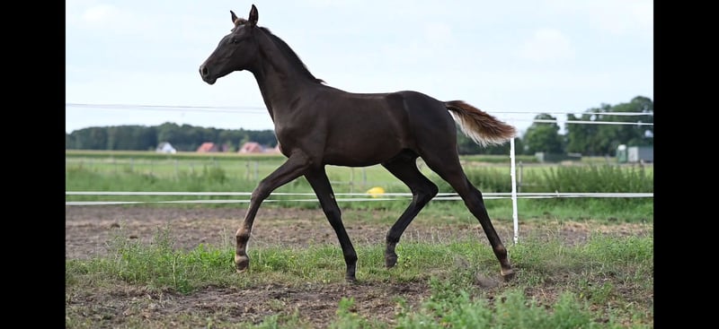 Stylowy ogier ciemnogniady o wymarzonej osobowości Na sprzedaż jest niezwykle typowy i elegancki ogier ciemnogniady z najlepszym pochodzeniem: Bon Esprit x Belissimo M. Ten młody ogier przekonuje nie tylko swoją poprawną budową i stabilną konstitucją, ale przede wszystkim swoją charyzmą i doskonałymi predyspozycjami. Złoty charakter – towarzyski, bezproblemowy i absolutnie grzeczny w codziennym obcowaniu. Zna prowadzenie, kowala i wszystkie podstawowe wymagania z pewnością. 3 bardzo dobre podstawowe chody z świetnym wygięciem i perspektywą na sport ujeżdżeniowy. Stylowy, nowoczesny i przy tym z dużą osobowością. Młode koń z najlepszym pedigrée, który zachwyca zarówno jakością, charakterem, jak i urokiem.