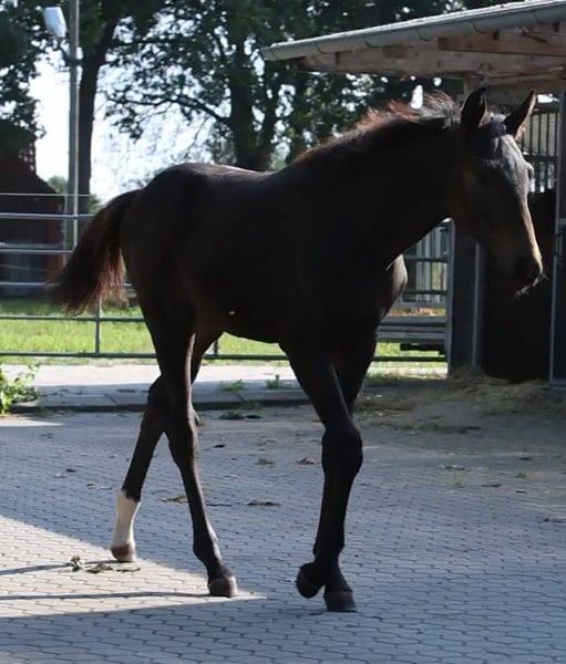 Typical colt by Escanto PS – born May 2, 2025 From a premium mare by St. Moritz Junior x Waterford This promising dressage foal combines modern performance genetics with excellent movement and correctness. The sire, Escanto PS (Escamillo x Fürstenball), is one of the sought-after young breeding stallions in dressage and impresses with his rideability, fluid movement, and noble appearance. The dam is a premium mare with a clear sporting pedigree through St. Moritz Junior and Waterford. She not only exhibits type and expression but also comes from a proven line for sport and breeding. The foal is very personable, with a proud posture, active hindquarters, and three very good basic gaits.