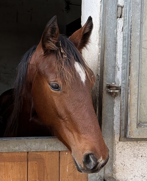 Curious colt from our own breeding. More information about the sire Go for Gold: https://www.ehorses.de/go-for-gold-hannoveraner-hengst-brauner-springpferd-zuchtpferd-deckhengst-dressurpferd-babenhausen/4116534.html Mother Naomi achieved a total score of 8.18 in her mare performance test, with individual scores up to 9.0 (Jumping 9.0, Ridden Fremdreiter 8.5, Trot and Canter 8.0), impressing across the board. She was successful up to the Young Jumping Horses class before entering breeding. First generation: Sport horses: Captain Sharkey by ECL Corvo (show jumping success up to 1.35 m). Auction horses: Cornet's Candice by Cornet Obolensky (Rostock Foal Auction 2017/€12,000), Child of Love by Las Vegas (Online Auction Handorf-Extra 2020). Second generation: Sport horses: Waikiki le Sursaut by Kannan GFE (show jumping success up to 1.35 m). Third generation: Sport horses: Tappy le Sursaut by Concorde (Dressage M success). Additional dam line: Sport horses: Theodoor by Junior STV (Dressage M success), Ciwan by Symfonie (show jumping success up to 1.30 m). Inquiries will only be answered via phone or WhatsApp: +49 151 41926243. Please specify the age and pedigree of the horse you are interested in when contacting us. Requests regarding installment payments, riding participation, or similar are not accepted. The horse is sold at a price corresponding to its quality to knowledgeable and dedicated owners. To prevent riding tourism, a trial ride or introduction fee of €30 will be charged, which will be deducted upon purchase.