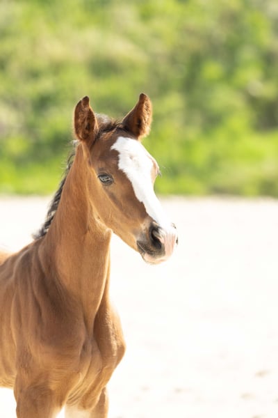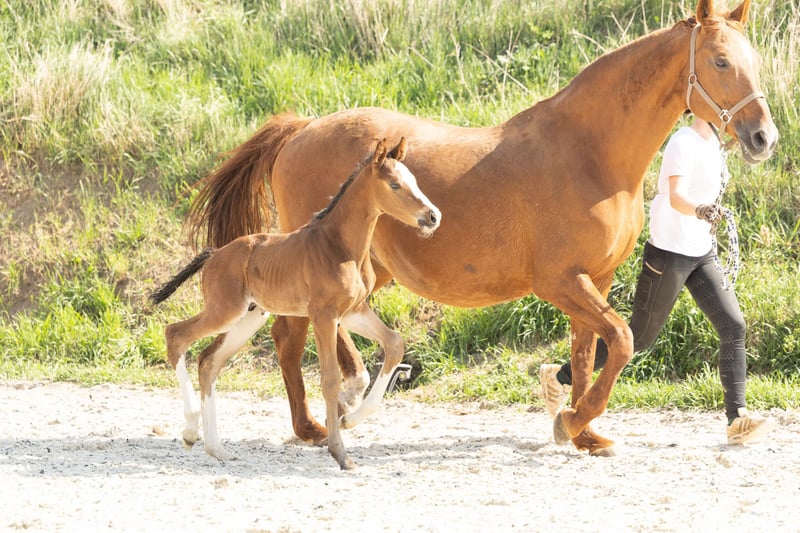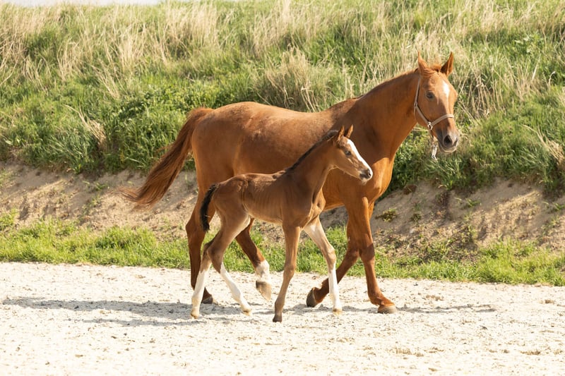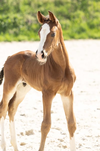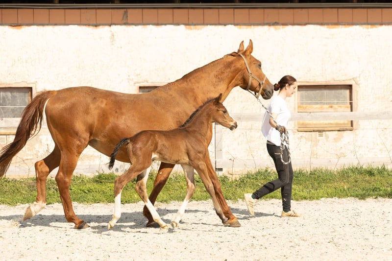 For sale is a long-legged Hanoverian stallion, born in 2025. This elegant bay impresses not only with his appealing stature but also with his prospective potential in show jumping. **Features:** - Breed: Hanoverian - Gender: Stallion - Year of Birth: 2025 - Color: Bay - Suitability: Show Jumping This year, we have 3 foals from his highly successful 3-star mother (see also other ad - stallion foal).