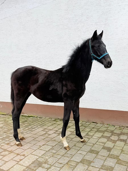 Se ofrece a la venta este hijo de Bondolo, nacido a principios de junio de 2025. En pleno crecimiento, ya ha demostrado su talento en sus primeras apariciones en público. El padre, Bondolo, presentó este año su primera camada de potros, la cual destacó positivamente en la evaluación de descendencia. Él mismo ha tenido éxito constante en concursos de salto y doma clásica. La madre, Florine, desciende del ganador de la S-Dressage, Florenz, y del destacado semental Ampère. Su madre, Donna Leon, fue la madre del semental aprobado Vanity Fair.