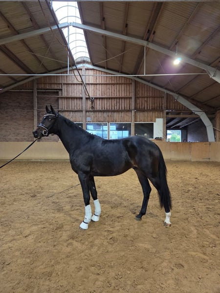 Schicker, sportlicher 2 jähr. Hengst v. Bonhoeffer X Finnigan zu verkaufen. Dieser qualitätsvolle Dressurhengstnachkomme sucht neue fördernde Hände. Super Charakter und eine tolle Arbeitseinstellung zeigt dieser Bonhoeffer Sohn bereits in der Vorbereitungszeit. Mit drei sehr guten Grundgangarten ausgestattet steht einer erfolgreichen Zukunft im Dressurviereck nichts im Wege. ca. 1,67m groß und guter TÜV vorhanden. Standort: 27432 Basdahl Nähere Infos und Besichtigungstermin bitte per Anruf unter 01520/3178971 vereinbaren.