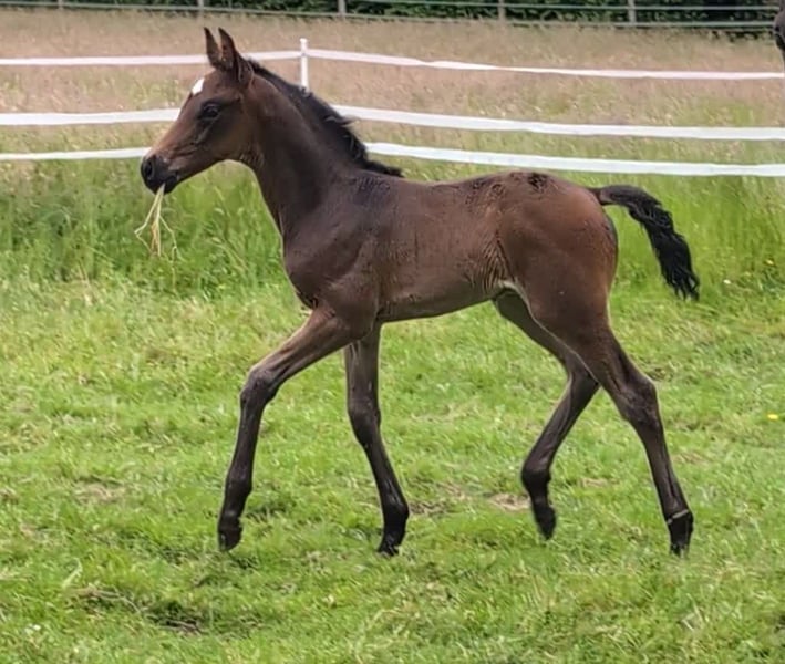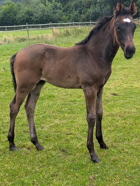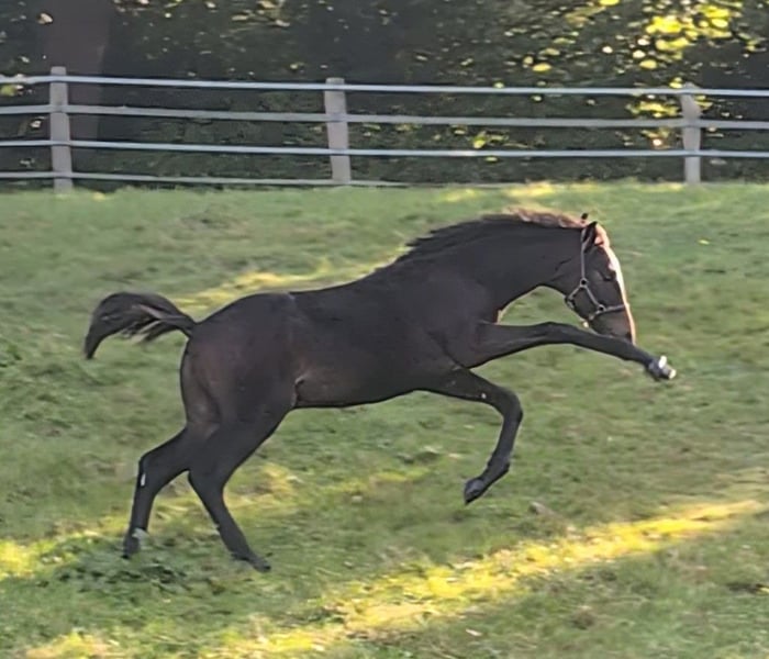 Hermoso, adorable y fuerte pequeño semental. Muy orientado a las personas. Los mejores sementales Totilas, De Niro y Royal Highness en el pedigrí. La hermanastra de la madre es Finest black Lady, que fue finalista en el Campeonato del Mundo de Caballos Jóvenes de Doma Clásica y fue entrenada por Benjamin Werdl.