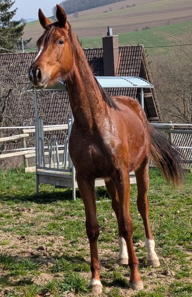 Charakter, Adel und Sportlerherz Zum Verkauf steht der 20 Monate alte Hannoveraner-Hengst Escario (geb. 07.07.2024). Ein Youngster mit Format, der durch seine enorme Ausdrucksstärke und sein sportliches Temperament besticht. Was Escario ausmacht: Escario ist kein Pferd für jedermann – er ist eine hochsensible, feurige Persönlichkeit. Er ist keine „Schlaftablette“, sondern ein echtes Sportlerherz mit einer schnellen Auffassungsgabe und dem nötigen „Go“. Wer ein Pferd mit einer feinen Kommunikation sucht und das Besondere zu schätzen weiß, findet hier einen hochinteressanten Rohdiamanten. Er ist absolut aufmerksam, menschenbezogen, sehr gelehrig und braucht einen Reiter/Ausbilder, der seine Energie zu nutzen weiß. Genetik für höchste Ansprüche: Vater: Der Ausnahmehengst Escanto PS (Old) (v. Escamillo). Er steht für moderne Dressurgenetik, Elastizität und höchste Leistungsbereitschaft. Mutter: Die Hauptstutbuchstute Fabienne (Hann) (v. Fürst Jazz / Totilas-Blut). Sie gibt ihm seinen Adel und seine Kraft mit. Eckdaten & Aufzucht: Name: Escario (Hannoveraner) Geboren: 07.07.2024 (18 Monate alt) Farbe: Dunkelfuchs mit schöner Zeichnung (Blesse, Schnippe, drei weiße Füße) Standort: 67742 Escario ist kein Notverkauf. Ich suche für ihn einen Partner, der seine Qualität zu schätzen weiß und ihn zielgerichtet fördern möchte. Bei ernsthaftem Interesse freue ich mich über Ihre Nachricht oder Ihren Anruf, um ein persönliches Kennenlernen zu vereinbaren.