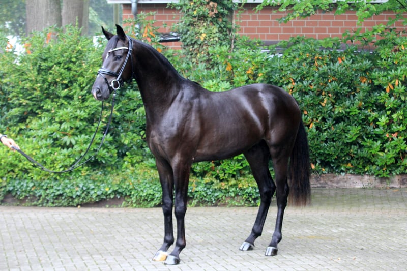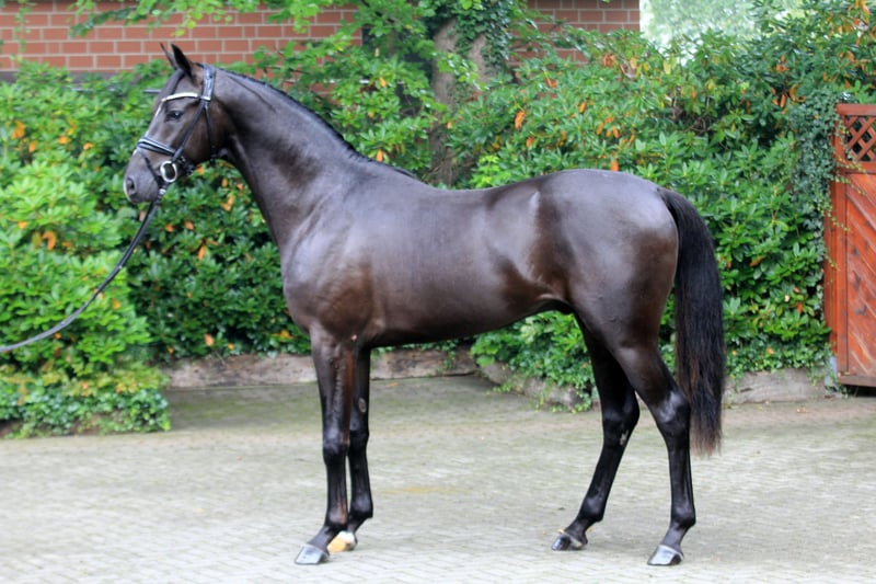 Esmaltado en negro azabache, una gema procedente de una cría amorosa. Descendiente de Glocks Energy - Sandro Hit. Aún en las primeras etapas de su formación, realiza sus primeros entrenamientos con gran éxito. Demuestra ser un caballo con gran voluntad de aprender y una actitud excelente. Su padre, Glock’s Energy, fue un semental distinguido en la selección de Hannoveraner en 2021. Este elegante tordo, hijo de Escamillo x De Niro x Prince Thatch xx, presenta movimientos amplios con mucha acción en las rodillas y se desplaza con mucha elasticidad y gracia a través del cuerpo. En las primeras tres generaciones de su pedigrí, cuenta con no menos de seis antepasados de Gran Premio. Desde hace 13 años, el abuelo materno, Sandro Hit, figura en el ranking WBFSH como uno de los mejores reproductores de caballos de doma en el mundo, siendo número uno en 2021. Sandro Hit ha dejado una huella indeleble en la cría moderna de caballos de doma, gracias a sus descendientes con un tipo brillante y movimientos extremadamente ligeros. Solo en Alemania, cuenta con más de 190 hijos autorizados para la cría, superando ampliamente a cualquier otro semental en su historia. La lista de sus hijos premiados en concursos, sementales con licencia y caballos destacados en ferias sería demasiado extensa para enumerarla. Muchos de ellos han tenido éxito en el deporte, como nuestro subcampeón mundial de caballos de doma Sir Donnerhall I, el séptimo en la Copa del Mundo Sir Donnerhall II OLD/Morgan Barbançon Mestre/FRA, el ganador de Gran Premio Sancisco OLD, el campeón nacional, récord de precios en subastas y S-sieger San Francisco OLD, el finalista en la Copa de los Burgos Sorento y Sir Skyfall OLD, clasificado en el Campeonato del Mundo de caballos de doma. En comisión. Video a solicitud.