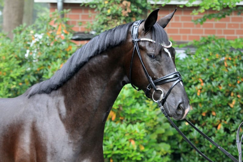 Jet black gemstone from a loving breeding farm. He is a son of Glock’s Energy - Sandro Hit. Still in the early stages of training, he has already completed his first training sessions with flying colors. He demonstrates a willing mind and a fantastic attitude. His sire, Glock’s Energy, was an outstanding premium stallion of the Hanoverian licensing in 2021. The handsome black stallion by Escamillo out of a De Niro x Prince Thatch xx mare features expressive, knee-action movements and moves with great elasticity and rhythm across his body. In the first three generations of his pedigree, he counts no fewer than six Grand Prix ancestors. For 13 years, Sandro Hit, the dam sire, has been ranked among the world’s top dressage sires in the WBFSH rankings, reaching number one in 2021. Sandro Hit has left an indelible mark on modern dressage breeding with his typy, brilliant, and exceptionally light-footed offspring. Over 190 licensed sons alone in Germany attest to his outstanding influence, far surpassing any other sire’s achievements. His list of licensed sons, premium stallions, and top market horses is extensive. Many of his progeny have also achieved success in sport, including the vice-world champion and Bundeschampion Sir Donnerhall I, the World Cup seventh-place finisher Sir Donnerhall II OLD/Morgan Barbançon Mestre/FRA, the Grand Prix-winning Sancisco OLD, the Bundeschampion, auction record-holder, and S-level winner San Francisco OLD, the Burg-Pokal finalist Sorento, and the dressage horse world championship participant Sir Skyfall OLD. On behalf of the owner. Video available upon request.