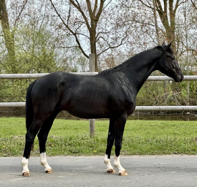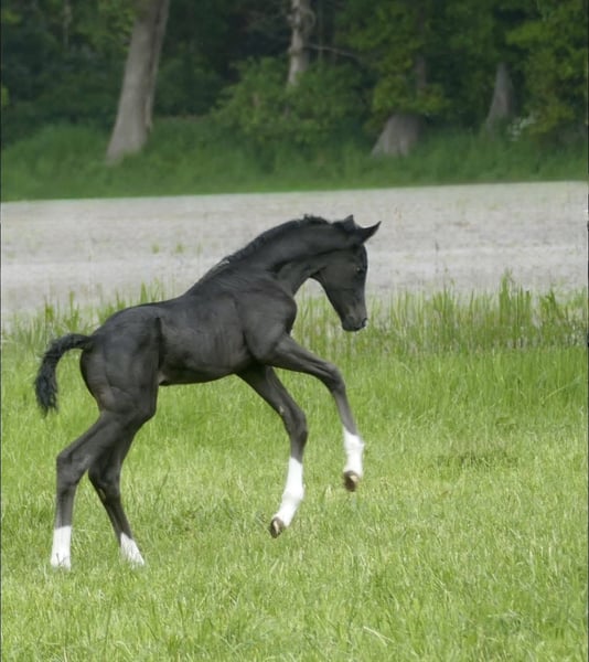 3 jähriger Hengst v TOTAL MCLAREN x SEZUAN - SIR DONNERHALL, 1.69m, roh, geröngt mit Hals und Rücken. VollBruder der Mutter mehrfach int. GP siegreich! Hannoveraner Leistungsstamm!