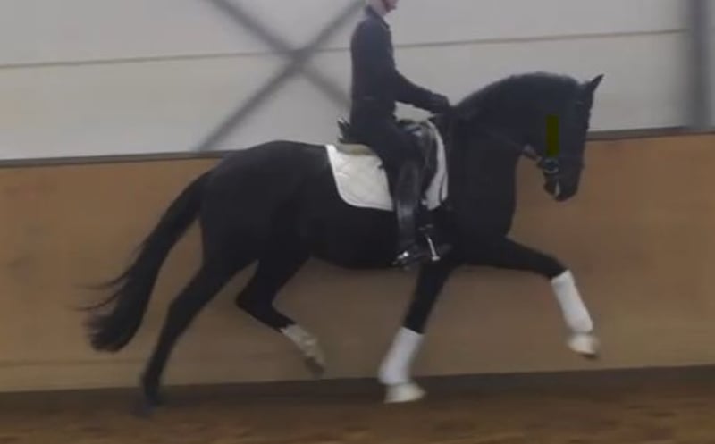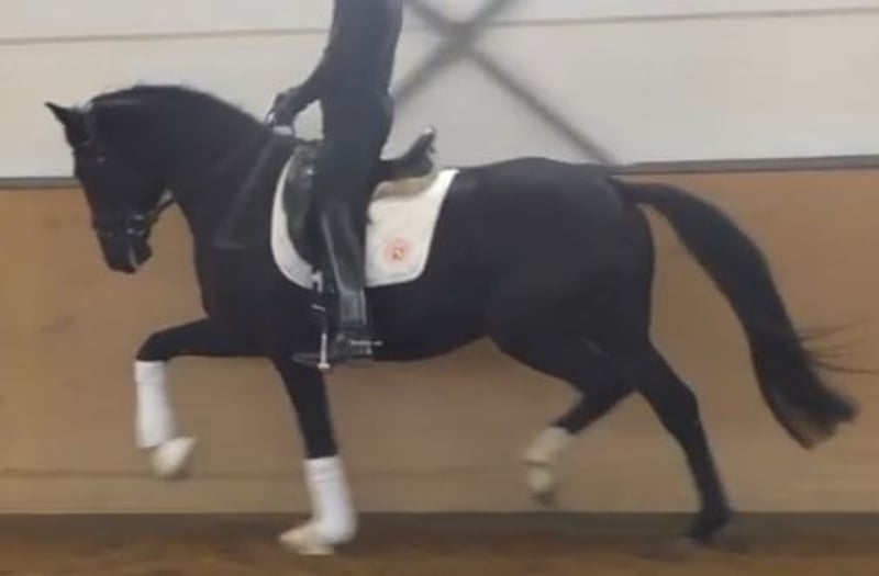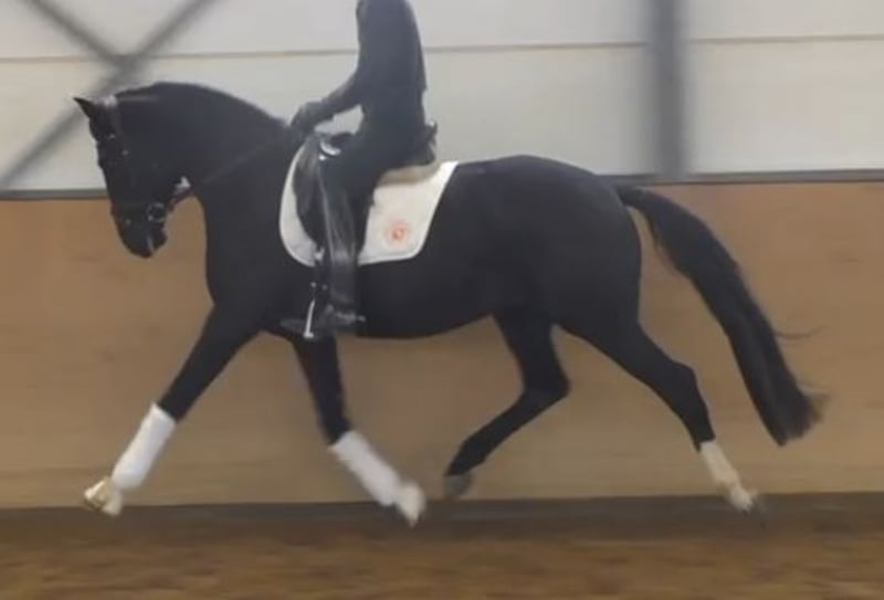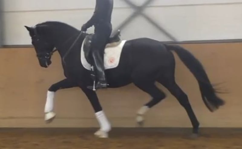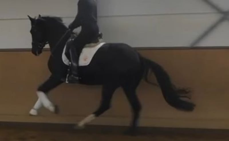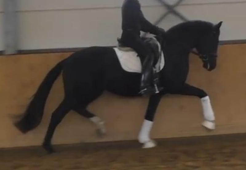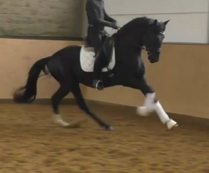 Frisch angeritten und schon hoch anständig. Auf dem Video erst wenige Male mit Reiter auf dem Rücken.