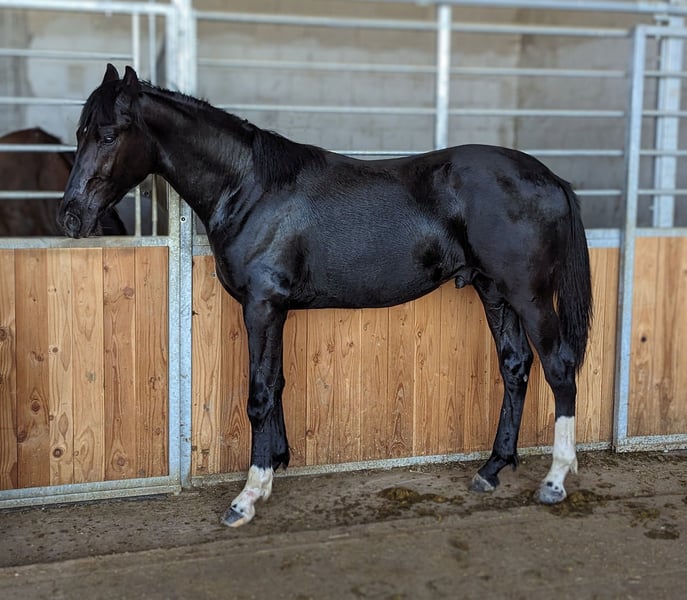 This elegant black horse stands out not only for his appealing appearance but also for his outstanding lineage.