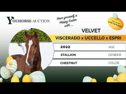 Velvet is a very attractive chestnut with a nice type and a strong model. He is well built uphill and has a strong hindquarter. He is quick off the ground, shows carefulness and demonstrates a good way of jumping. A horse with a strong engine. He moves well, has a very good trot and a good canter. A complete sport horse with quality, expression and scope. Sire Viscerado competes at 1.45m level and is a son of Viscount (1.40m), from the Valentino line. A stallion that passes on sport, scope and mentality. Dam Upsalla is a daughter of Uccello (1.40m) and comes from a versatile family with both showjumping and dressage horses at a high level. The damline is strong with performances in both disciplines: Contaro – 1.45m Charnel – 1.40m Burschi – 1.35m Cover Girl – 1.60m Enzo Evado – 1.40m First Class – Grand Prix dressage Frankie – Grand Prix dressage winner Da Vincerico – Grand Prix dressage Priceless – Inter II A family with proven quality in both jumping and dressage.