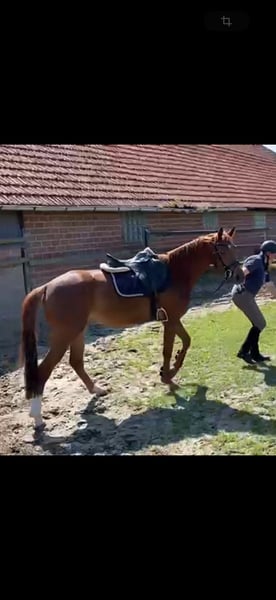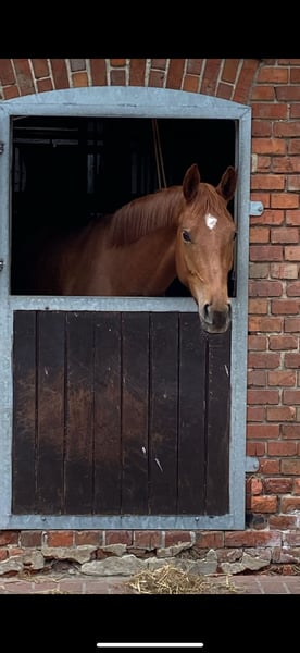 Unfortunately, I have to part with my first self-bred, stunning chestnut mare, as she cannot be ridden. She is quite sensitive and tends to become tense under the saddle, which makes her very lively and energetic. Since I no longer have the financial means to give her the time and calmness she needs, I have to let her go. Videos can be sent easily upon request, including free jumping and jumping videos. For any further questions, please feel free to contact me by PHONE. Unfortunately, WhatsApp or direct messages will not be answered.