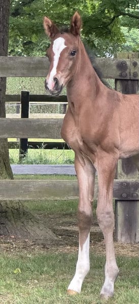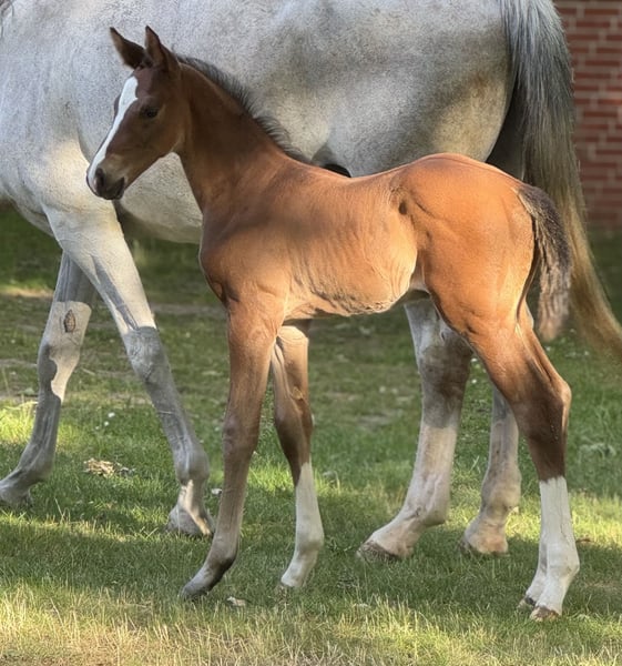 This modern descendant of Franco Nero impresses with three very good basic gaits and a lot of curiosity. He approaches humans with great trust and openness. Father Franco Nero is sired by the Grand Prix successful Franziskus, who has been part of the German team under Ingrid Klimke. The mother "Die Krönung H" is a direct descendant of Desperados FRH, who also represented the German colors at Grand Prix level. Die Krönung H is also a half-sister to Del Magico, who became Vice World Champion at the World Championships for Young Dressage Horses at the age of 6. Direct siblings are already successful in sports, and several state premium mares and auction horses have emerged from Die Krönung H. If you are interested or need further information, please contact us. We look forward to your message!