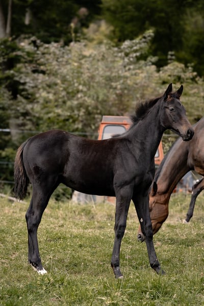 Na sprzedaż dostępne jest czarne ogierki urodzone 1 maja 2025 roku. Mały ogierek zachwyca swoimi solidnymi podstawowymi chody, eleganckim wyglądem, a przede wszystkim niezwykle przyjaznym charakterem – to doskonałe predyspozycje, aby w przyszłości rozwinąć się w niezawodnego i wszechstronnego konia jeździeckiego. Jego ojciec, LeClerc, symbolizuje elegancję i wyrazistość w wyjątkowy sposób. Dzięki swojej imponującej sylwetce, szlachetnemu typowi i równomiernym, bardzo dobrym podstawowym chodom, szybko zwrócił na siebie uwagę. Szczególnie wyróżnia się piękną twarzą z dużym, spokojnym okiem, które emanuje opanowaniem i spokojem – cechy, które wydają się przekazywać swoim potomstwu. Matka ogierka, sprawdzona sportowo, pochodzi od Royal Blend x Prince Thatch xx x Werther. Ojciec matki, Royal Blend, niezawodnie przekazuje jej wyjątkowo rytmiczny, pewnie schodzący z wyraźnym odchyleniem w ciele chód, co również zostało odziedziczone przez tego źrebię. W połączeniu z jej ujmującym charakterem i wysoką jakością ruchu ojca powstaje młody koń o dużym potencjale na przyszłość. Idealny jako przyszły koń rekreacyjny – zarówno dla ambitnego jeźdźca rekreacyjnego, jak i sportowego. Wychowuje się, jak wszystkie nasze źrebięta, w stadzie z innymi klaczami i źrebiętami. Obecnie cieszy się odpowiednią opieką i wychowaniem w najlepszym towarzystwie, a od późnej jesieni będzie mógł przeprowadzić się do nowego domu.