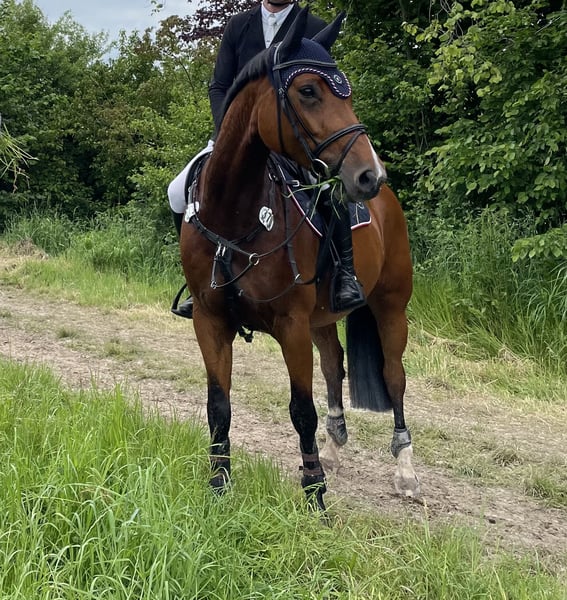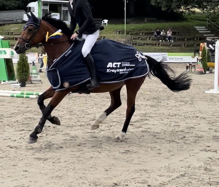I am selling my beautiful 10-year-old Hanoverian mare by Graf Top * Accord II due to time constraints. I purchased her directly from her breeder at the beginning of 2024. From her dam line, a half-sister has been successful under Pius Schwitzer. When I bought her, she was still relatively green and could be further trained by an amateur for me. In 2024, she had a fantastic season, winning A** and L show jumping classes and placing in every competition. At the same time, she patiently did a few small jumps with me as a beginner, providing a great introduction to jumping at home. Unfortunately, in 2025, I was unable to compete with her due to personal reasons. She truly enjoys jumping, is not spooky at the jumps, and always wants to make it to the other side, even with a beginner rider. She is very responsive, well-behaved, and shows no stallion-like behavior. She always aims to please her rider and enjoys daily work, whether riding, jumping, hacking, or lunging in double longe. I can easily imagine her being suitable for younger riders or amateur riders. She is confident in the terrain, shoe and load calm, and has also been very well-behaved at competitions. She comes out to her paddock every day and spends the night in a box stall. Previously, she was kept in a large herd at her breeder’s and is compatible with other horses. I am looking for a loving and caring home for her. Priority goes to the well-being of the horse. No sales to dealers. She is available for trial rides. A fee of €35 will be charged for the trial to discourage tour riding, which will be deducted from the purchase price if she is bought. X-rays from 2023 are available from my purchase; more recent images would need to be taken by the new owner. Further photos or competition and training videos are available upon request. If interested, please contact me via email.