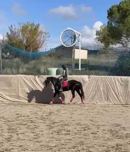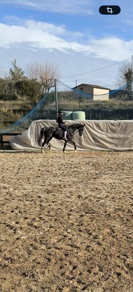 Yegua de doma classica de raza hannoveriana con unos buenos movimientos para la disciplina. Yegua ya pisetada fuera de casa y lista para emezar la temporada 26 en recordidos de doma classica a nivel territorial y nacional. Tambien saltando facil hasta 1,10cm i recoridos a 80/90cm. No solo destaca por su belleza y movimientos sino tambien por su buen linaje com nombres en si carta como De Niro - Dancier - Donnerhall entre otros. Responde muy bien a las ayudas y aprende rapido en el mundo de la doma. Tiene ejercicios mas complejos como cambios de mano simple, piruetas (paso/galope), apoyos pendientes de confirmar. Ejercicios confirmados espalda dentro, grupa debtro, espalda fuera, cesiones, transiciones parada-trote, torte-parada, paso-galope y viceversa. Se disponen de videos y mas informacion. NO LLAMADAS!
